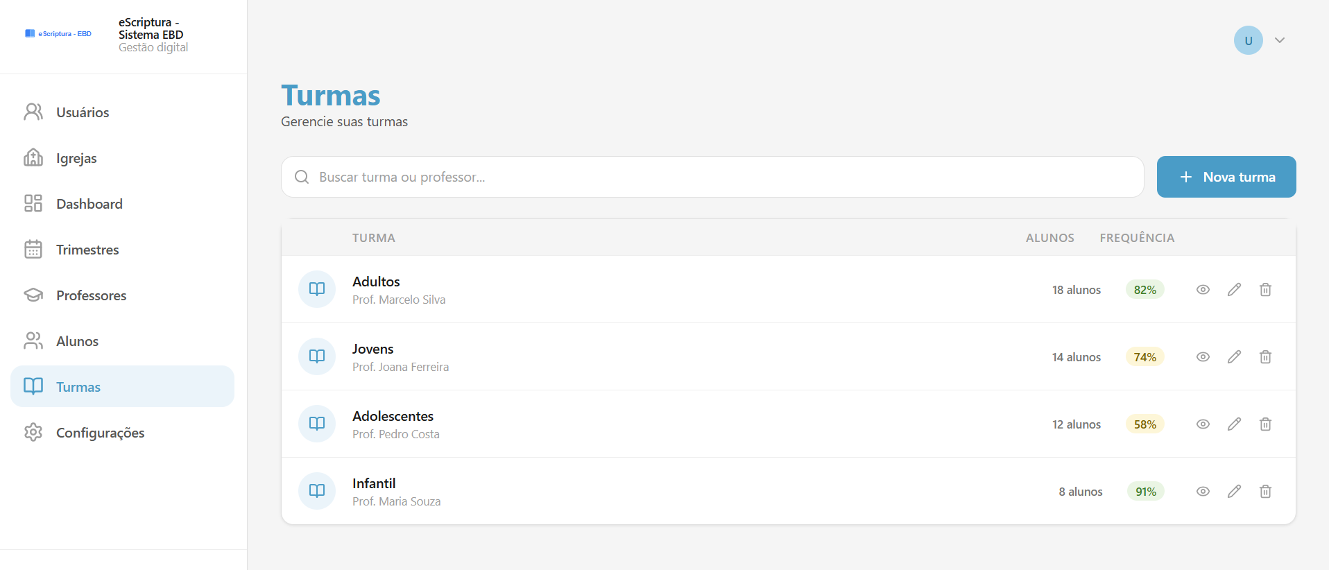 O eScriptura nasceu de uma necessidade real dentro da igreja: organizar melhor a Escola Bíblica Dominical com mais clareza, menos papel e decisões baseadas em dados.